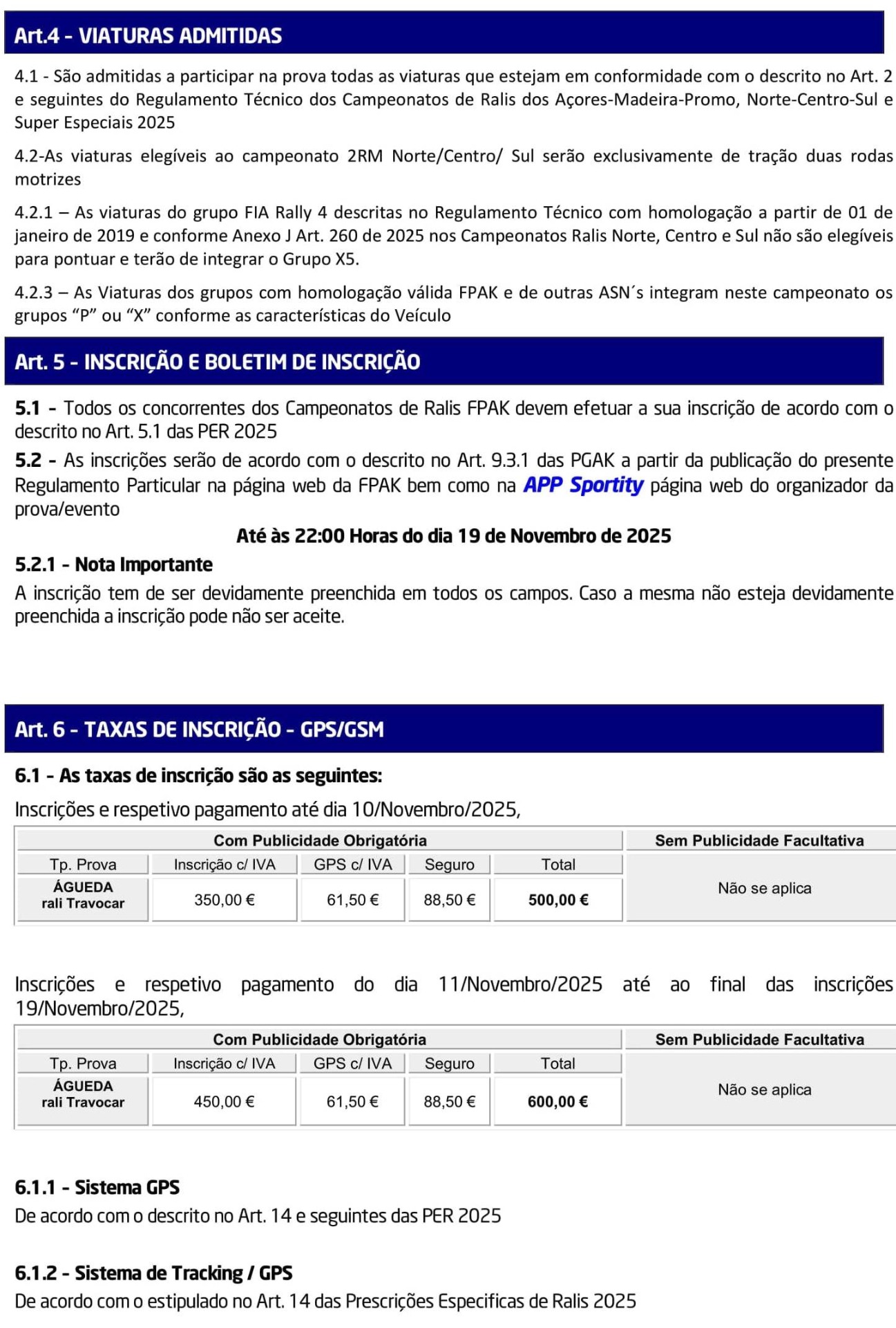 Inscrição no Portal da FPAK + Regulamento Particular + Mapa de Controlos